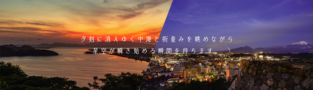 360°パノラマの見晴らしの中で、刻々と色を変化させる空を眺め、
