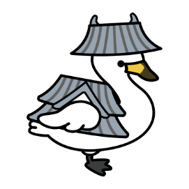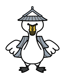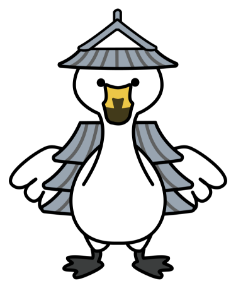 米子城の五重の天守閣と四重の副天守閣をモチーフとして、兄弟の姿で表現しています。土台となっている鳥は、米子市の鳥である「コハクチョウ」です。